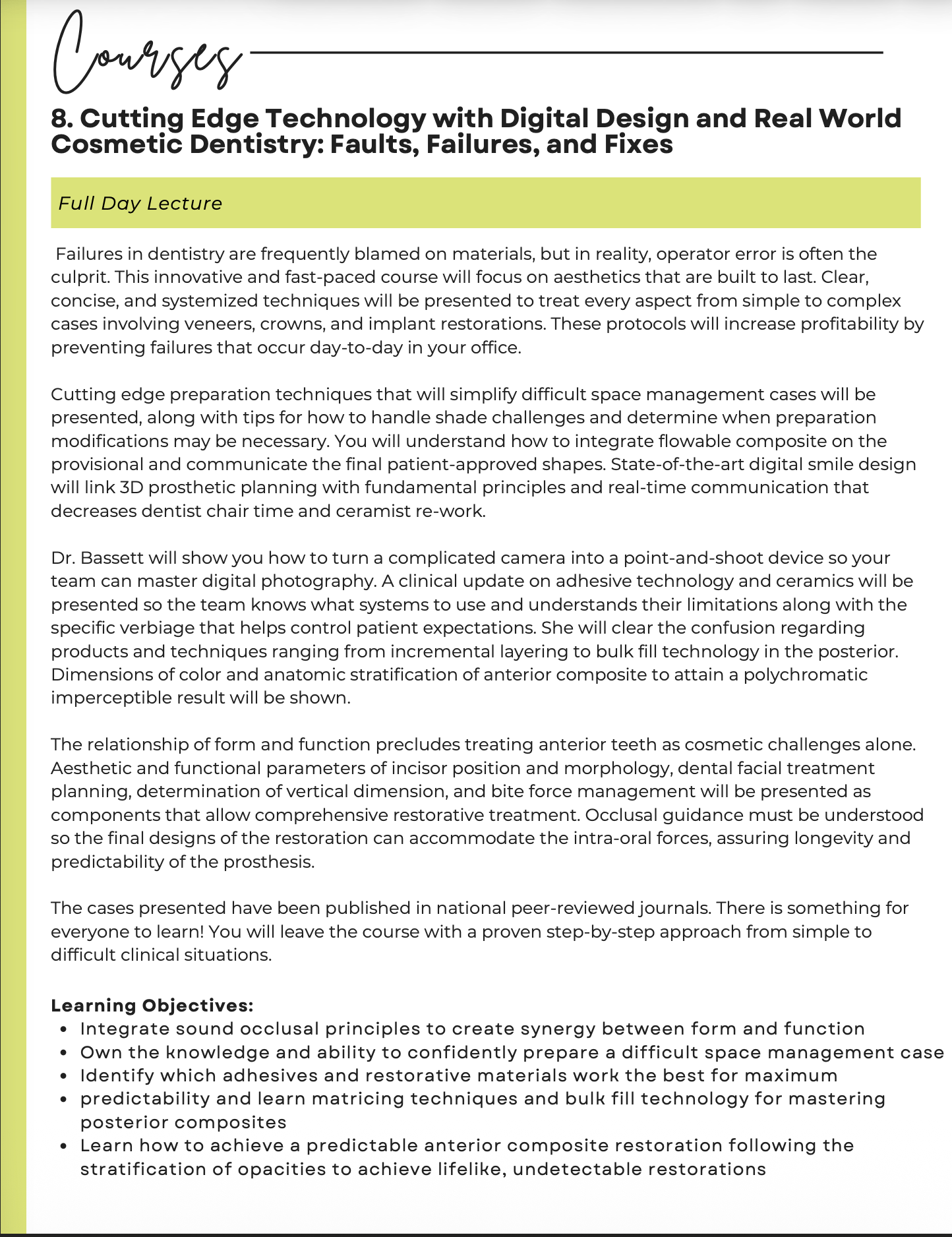 She is renowned for delivering fast-paced, content-filled courses with an un-matched passion for dentistry.